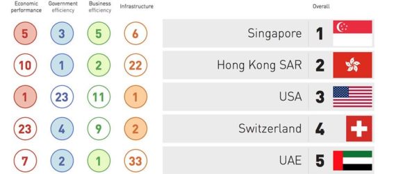 В 2019 году Сингапур поднялся на две позиции, заняв первое место в пятерке самых конкурентоспособных экономик мира, а Гонконг остался вторым. Напротив, Соединенные Штаты, которые заняли первое место в 2018 году, потеряли две позиции, достигнув третьего места в рейтинге 2019 года.
